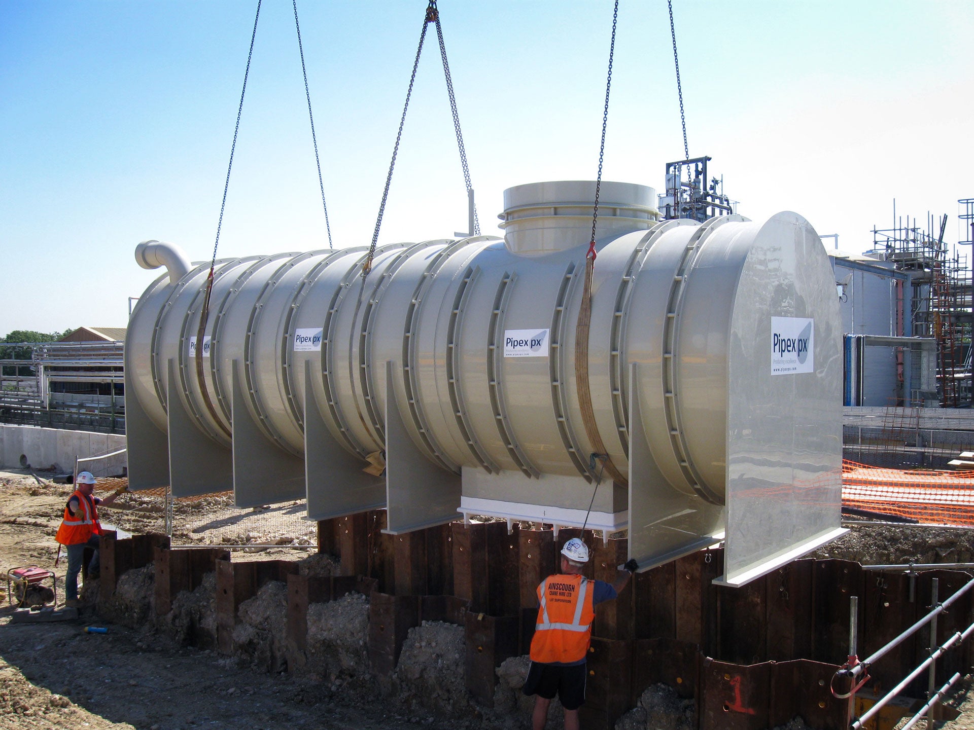 Pipex containment tank being installed underground onsite