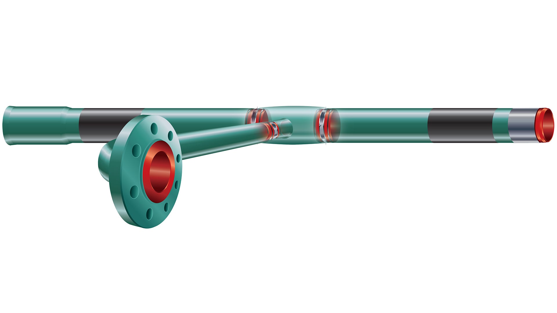 Render of a t-flange ThruKote ZapLok connection system.