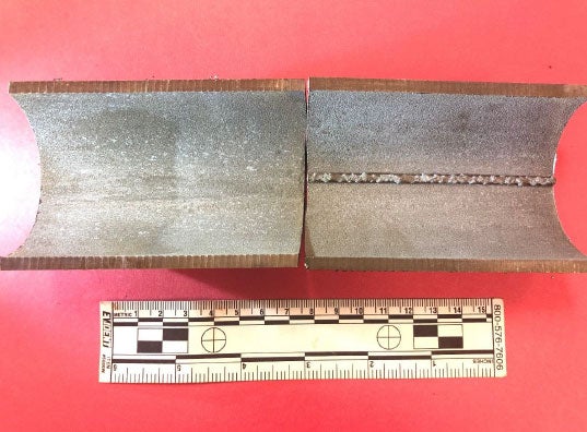 As recently as 2017, mid- to high-strength (100,000 to 130,000 psi) conventional coiled tubing was still the majority string material used by coiled tubing service companies. However, Q&T coiled tubing has been a commercially available product since 2015. Even with great care, conventional coiled tubing strings suffer from fatigue spikes at the bias welds while the parent material has lower fatigue, as seen in Fig. 1, and the seam weld itself is highly susceptible to corrosion causing pinholes or fracture initiation (Fig. 2).